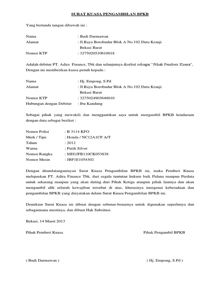 Jika angsuran alias cicilan telah lunas, anda harus mengetahui syarat pengambilan bpkb. 50 contoh surat kuasa yang baik dan benar terlengkap. Hari ini saya melakukan pelunasan dua motor saya di adira finance dengan nomor kontrak: Promo pinjaman rp 100.000.000 angsuran rp4.112.000 selama 3 tahun, sudah termasuk asuransi kendaraan tlo & Kami siap membantu anda dengan pembiayaan modal usaha jaminan bpkb motor dan mobil.